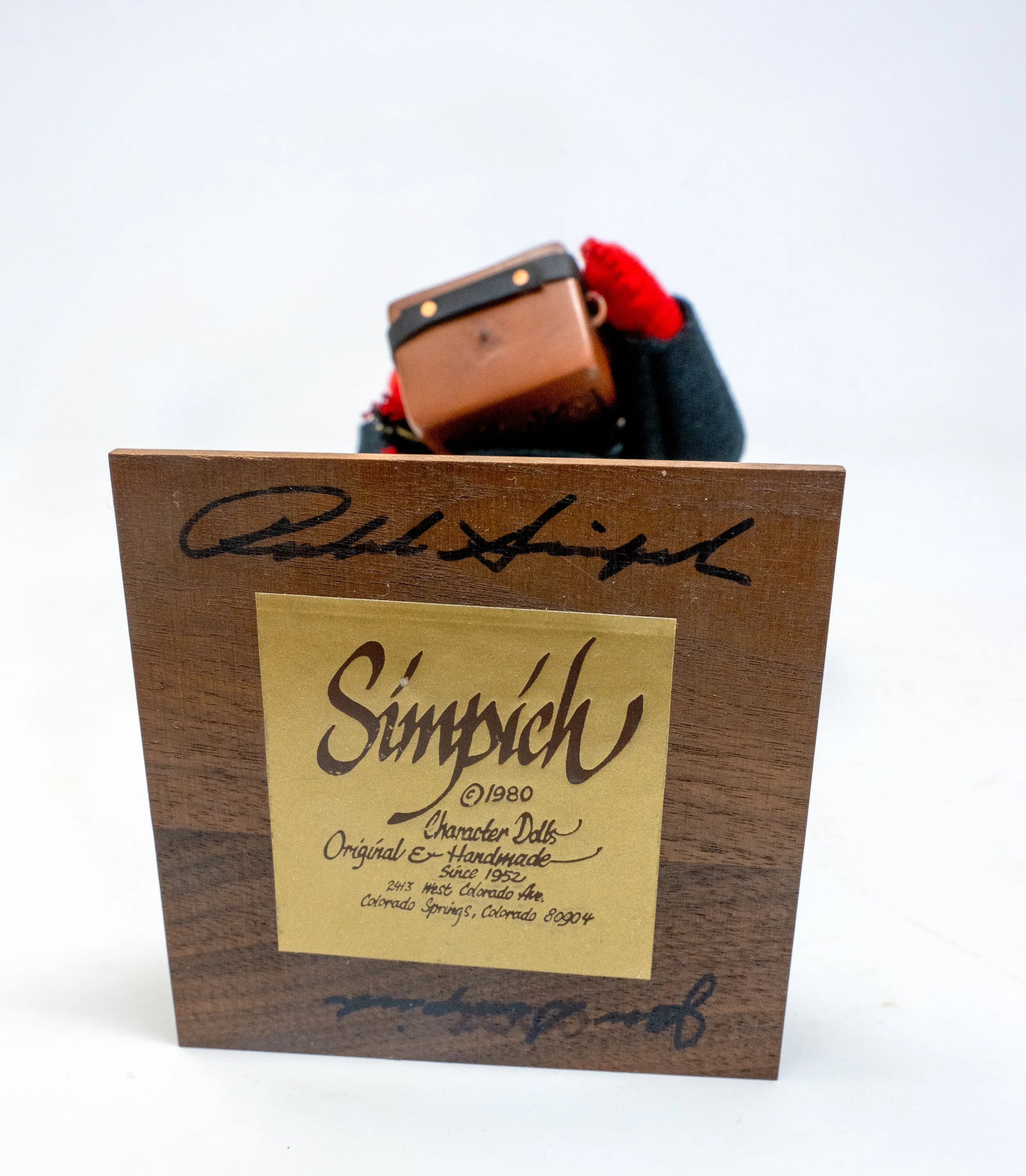 Each handmade figure is inspected and certified by a member of the Simpich family and includes a Certificate of Authenticity with a unique Certification number assigned. All dolls we sell will be in displayable condition, but price will refect the doll’s overall condition. Images are of the doll you will receive.